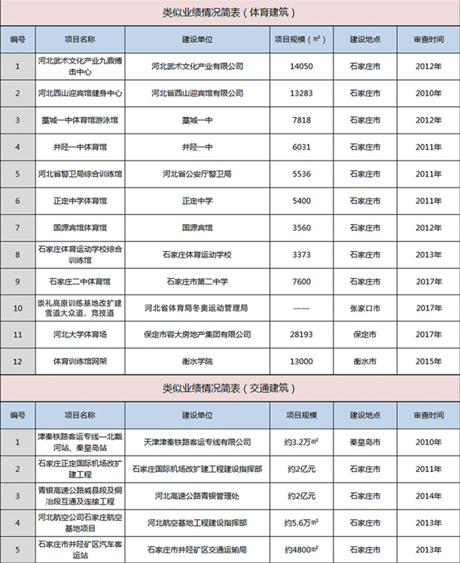 類似業績情況簡表(體育、交通建筑)